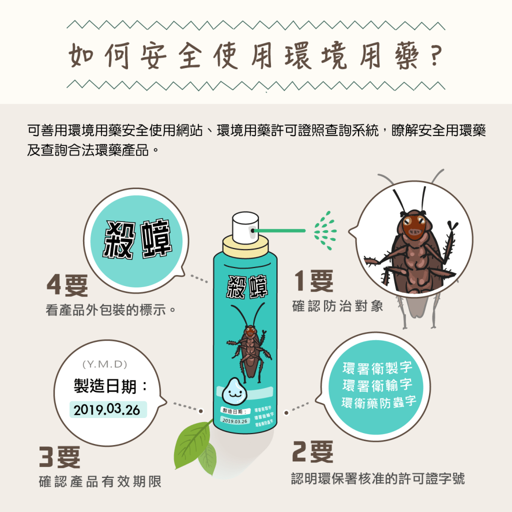 確認防治對象(如:蚊子、蒼蠅、跳蚤、蟑螂)對症下藥。